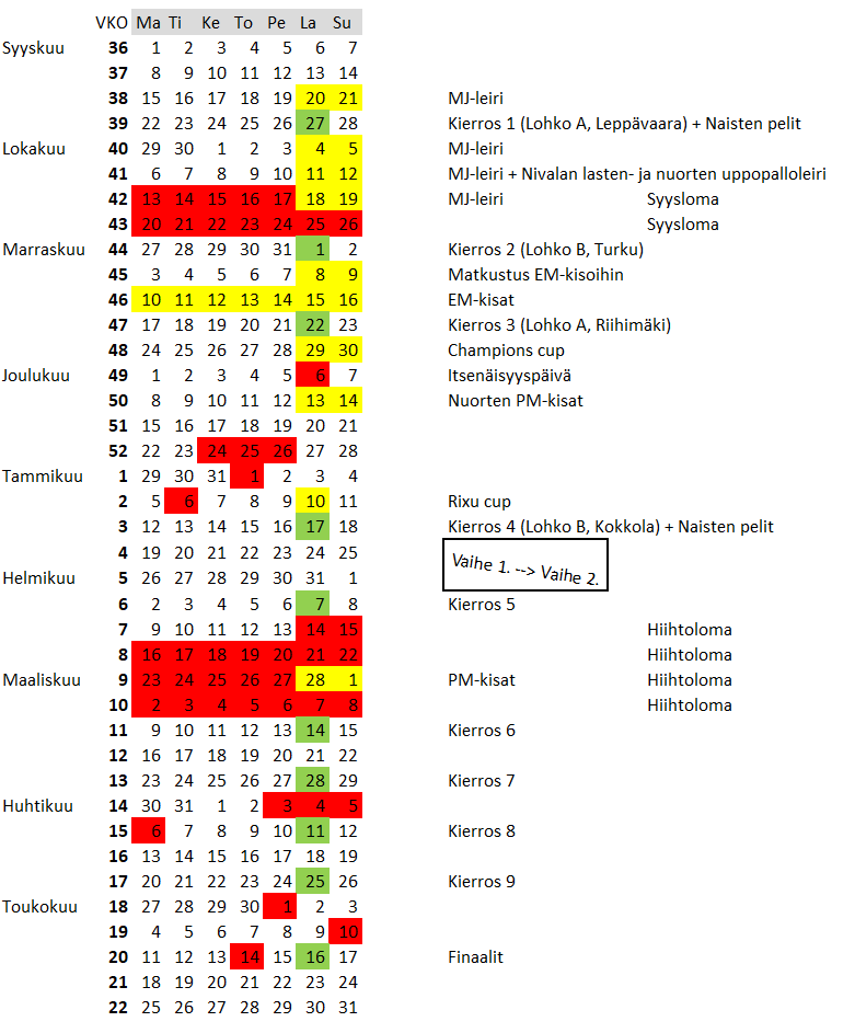 Alustava kalenteri kaudelle 2025-2026